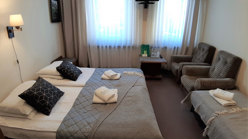 Pokój Ekonomiczny 6-osobowy składa się z 2 pokoi o powierzchni 12 m2.